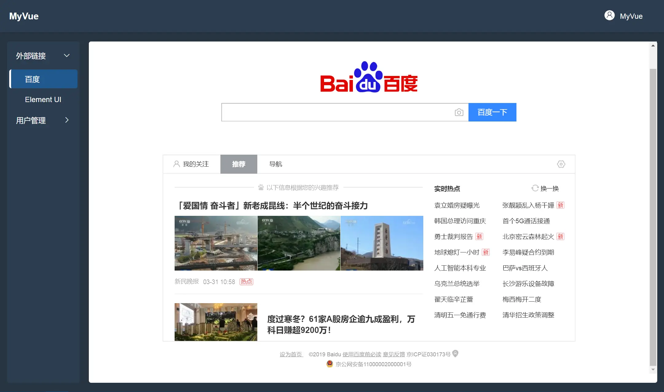 由于系统整合其他资源例如java的druid,swagger ui或其他原因,我们需要在系统内展示外部链接。以往我们通过HTML中iframe标签来呈现,我们知道Vue是单页面应用,那么在Vue中,我们是如何操作的呢?