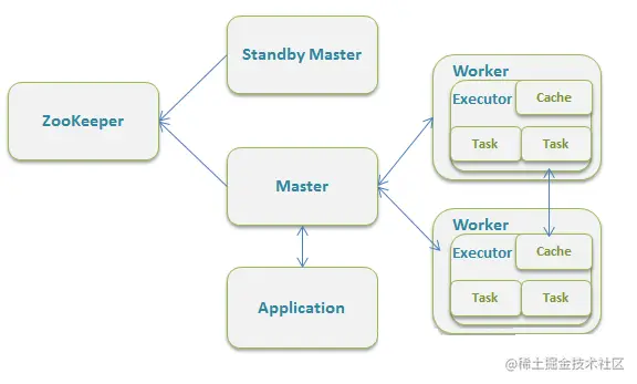 - Worker: 集群中任何可以运行Application代码的节点,在Standalone模式中指的是通过slave文件配置的Worker节点,在Spark on Yarn模式下就是NodeManager节点