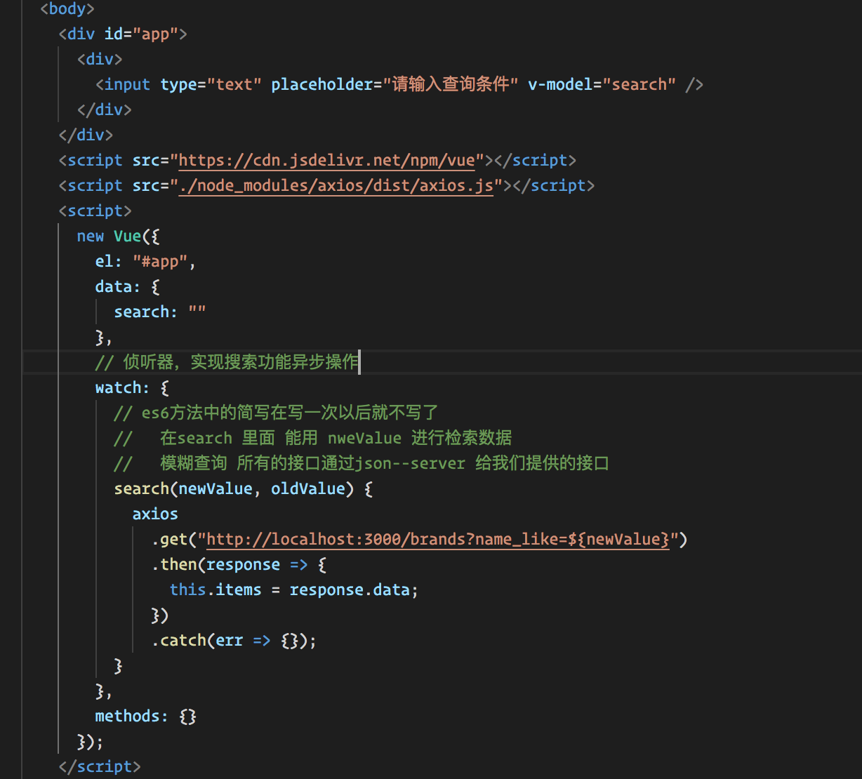 侦听器实现模糊搜索