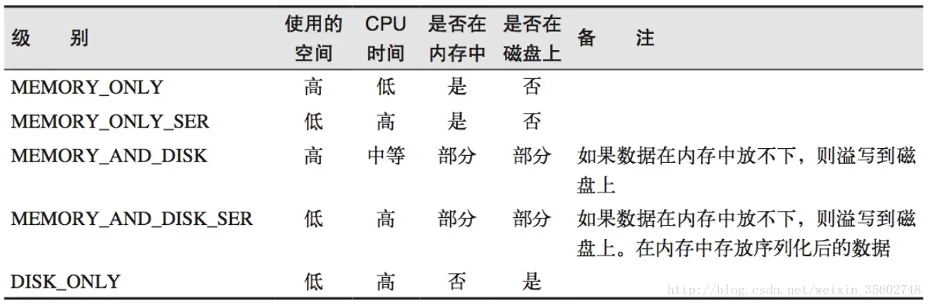 理解了这5个参数,StorageLevel 的12种缓存级别就不难理解了。例如: