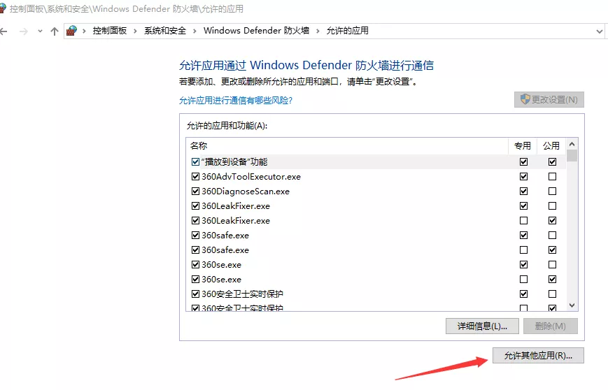 点击添加,将选中的两个程序添加到允许的应用中