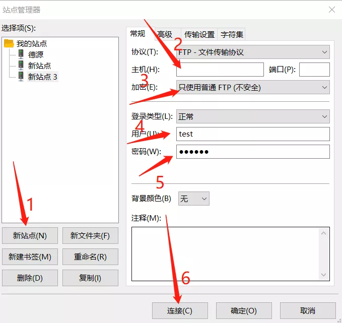 用户名跟密码:填写FTP服务器设置的用户名跟密码