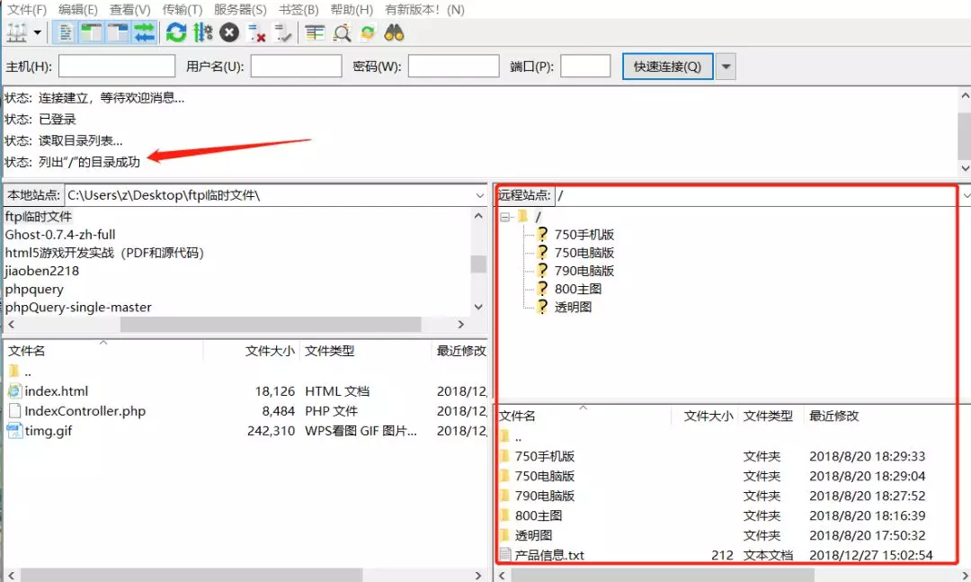 成功连接后,列出FTP服务器共享的文件目录