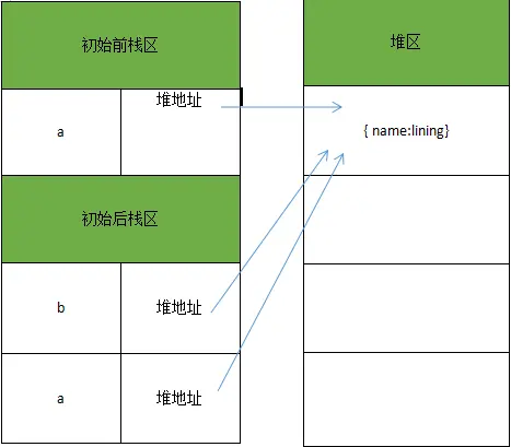 为新变量分配的空间中。不同的是,这个值的副本实际上是一个指针,而这个指针指向存储在堆中的一