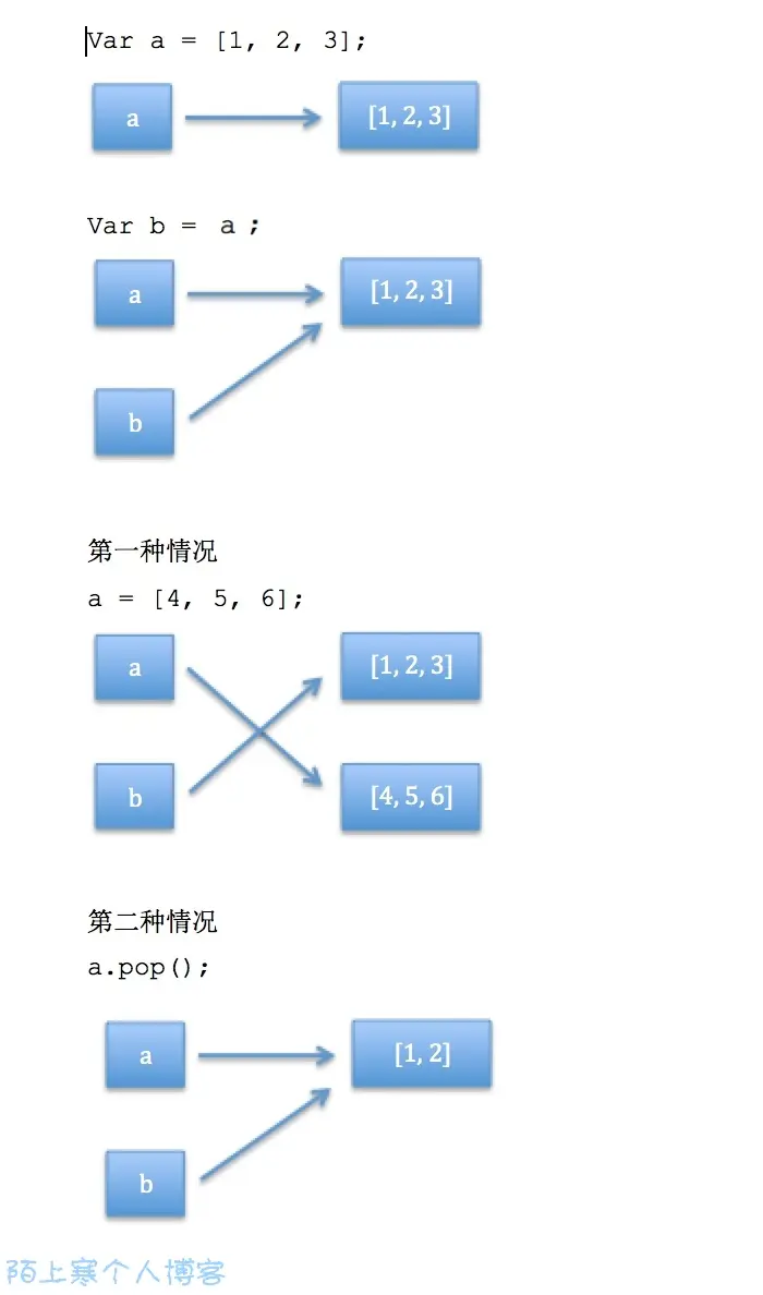 a.pop();// a 指向的数组实例发生了 pop 操作