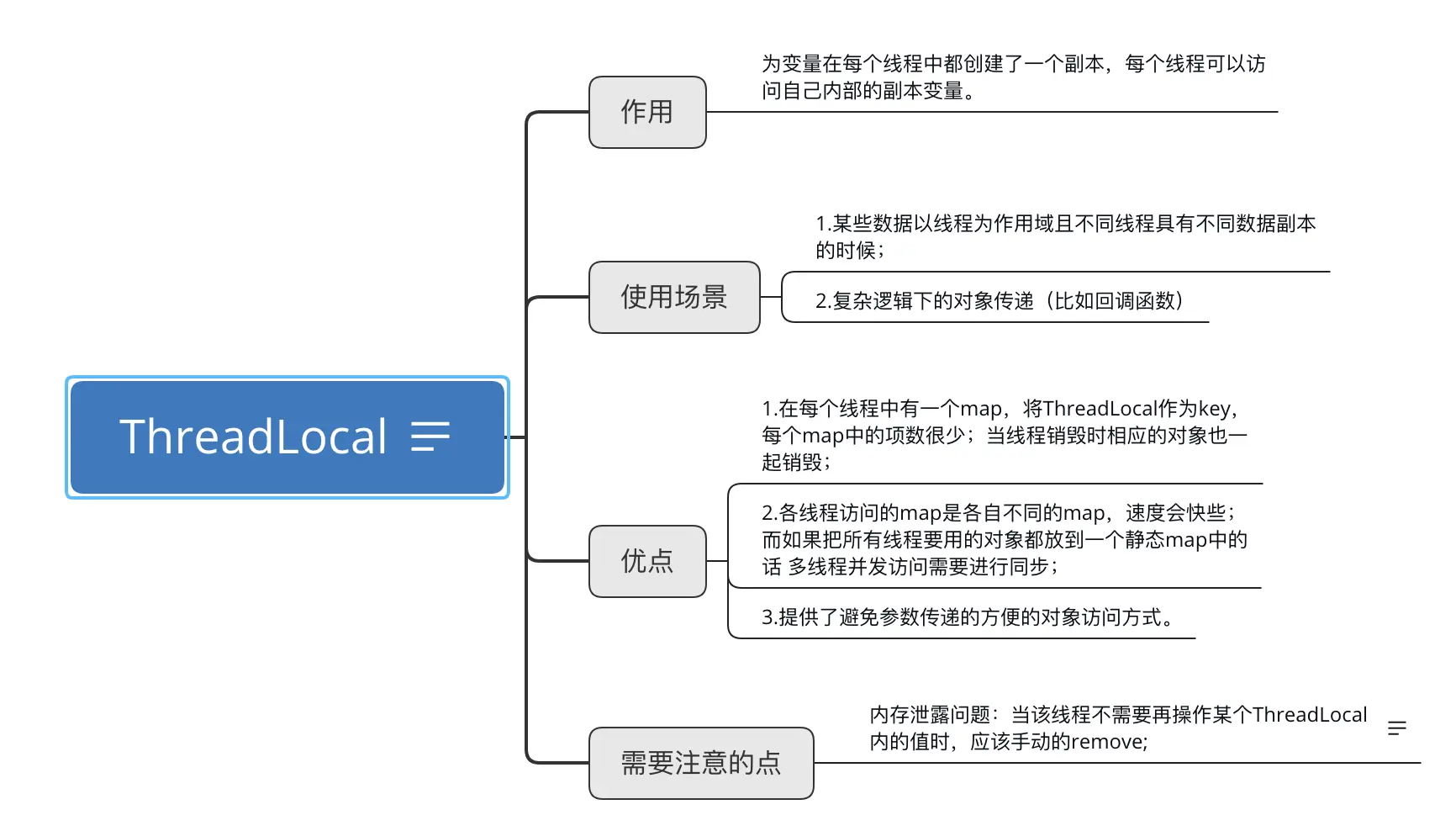 ThreadLocal中的嵌套内部类ThreadLocalMap本质上是一个map,依然是key-value的形式,其中有一个内部类Entry,其中key可以看做是ThreadLocal实例的弱引用。