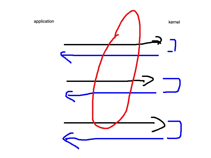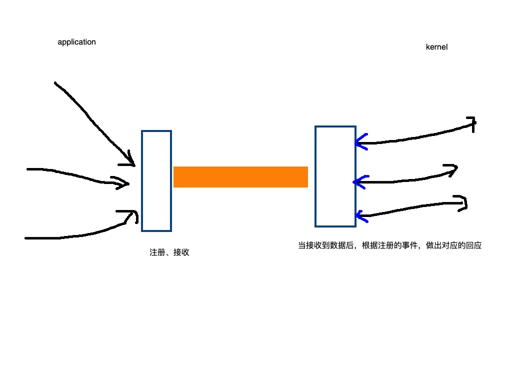 每个线程或者进程都先到图中”装置“中注册,然后阻塞,然后只有一个线程在”运输“,当注册的线程或者进程准备好数据后,”装置“会根据注册的信息得到相应的数据。从始至终kernel只会使用图中这个黄黄的线程,无需再对额外的线程或者进程进行管理,提升了效率。