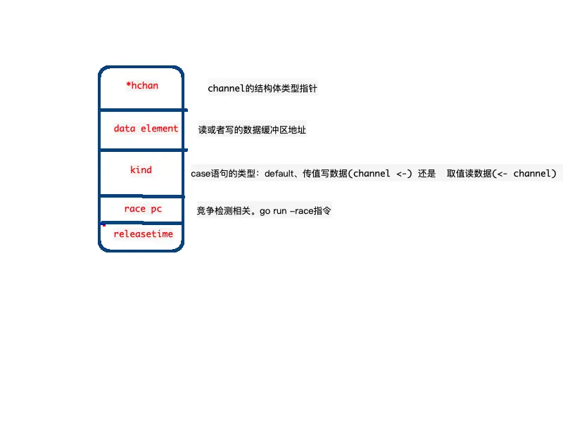 kind uint16 //case语句的类型,是default、传值写数据(channel <-) 还是 取值读数据(<- channel)