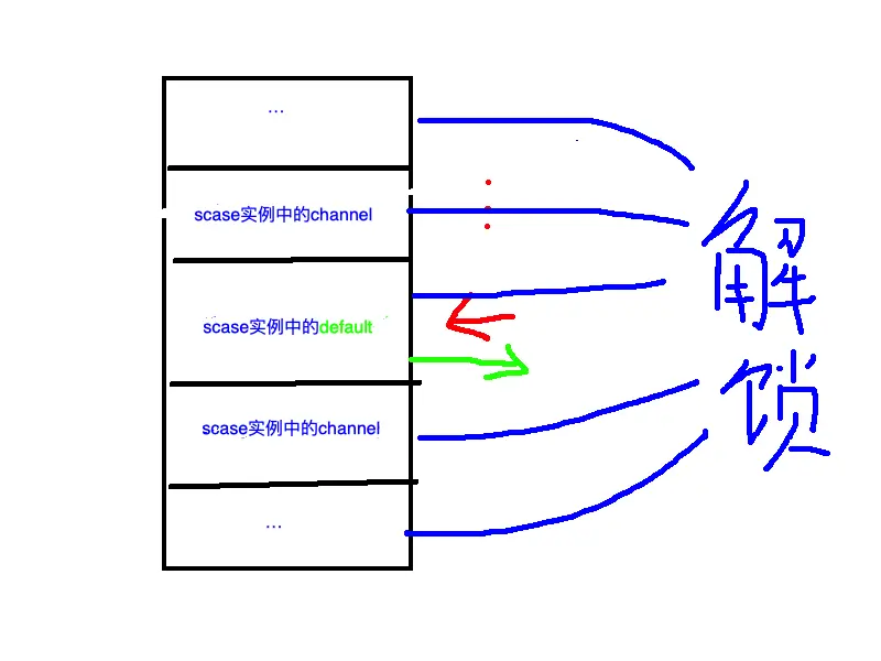 假如没有channel可读或者可写,但是有default语句,则同上:返回default语句对应的scase并解锁所有的channel。