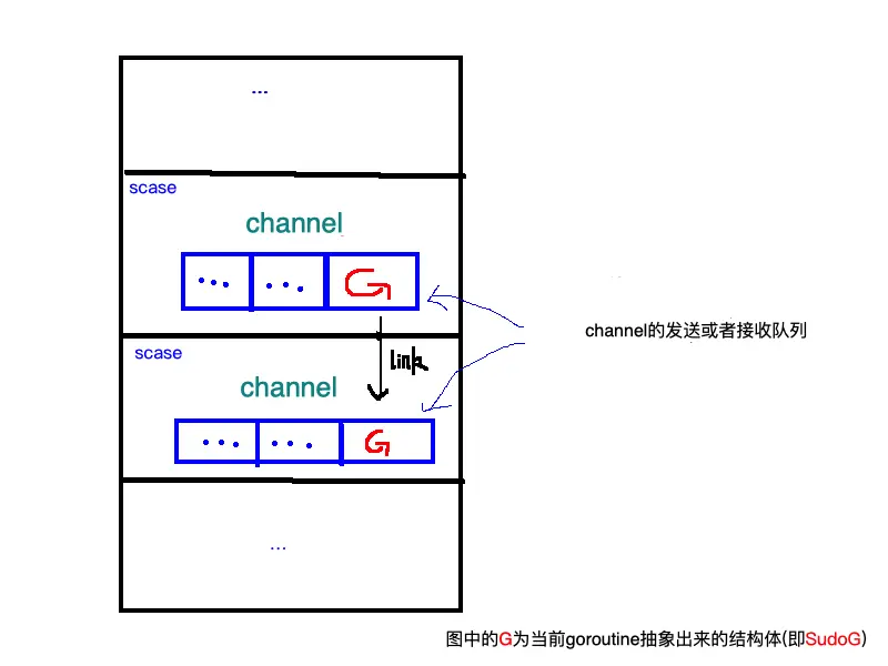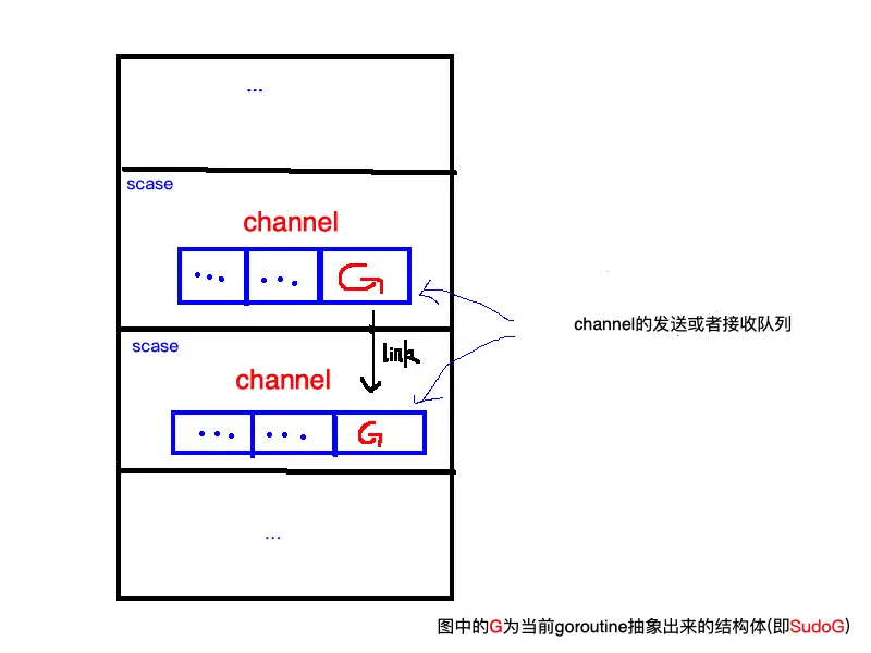 在一个select中,所有的case语句会构成一个scase结构体的数组。