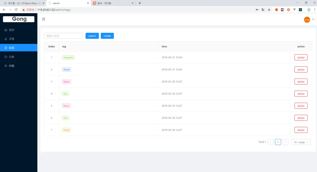 由于一直在用 vue 写业务,为了熟悉下 react 开发模式,所以选择了 react。数据库一开始用的是 mongodb,后来换成 mysql 了,一套下来感觉 mysql 也挺好上手的。react-router、koa、mysql 都是从0开始接触开发的,期间遇到过很多问题,印象最深的是 react-router 参考官方文档配置的,楞是跑不起来,花费了好几个小时,最后才发现看的文档是v1.0, 而项目中是v4.3, 好在可参考的资料比较多,问题都迎刃而解了。