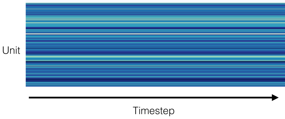 我们可视化了网络好几层的激活值。在检查第二个卷积层(一个宽为 128 的时间卷积层)的激活值时,我们注意到了一些奇怪的事: