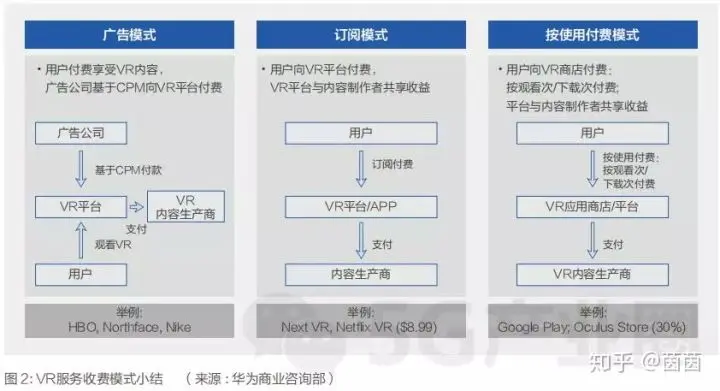 VR生态系统中的三种主要收费模式将是广告模式、订阅模式和按使用付费模式。