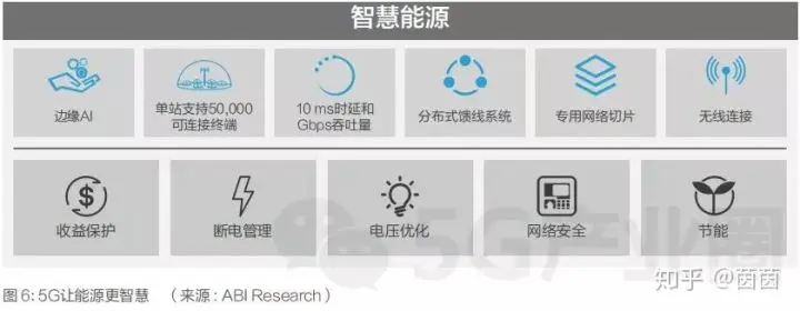 - 5G也降低了许多新兴市场能源供应商的准入门槛。5G的低延迟,广覆盖和快部署允许智能电网进行快速的信息交换,这在可再生能源为主要电源的市场非常有用。