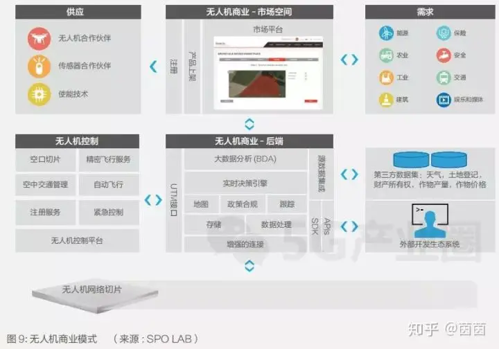此外,无人机运营企业及其市场合作伙伴可以建立大数据,改善服务,并利用数据分析进行变现。脱敏后的行业大数据可以帮助金融服务机构预测商品价格和成本的未来趋势,并有助于物流和航运公司以及政府机构进行前瞻性规划。