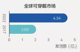 - 根据ABI Research估计,从2017年到2022年,可穿戴设备的年复合增长率将达到16.4%,发货量从2017年的2.03亿件,到2022年的4.34亿件。
