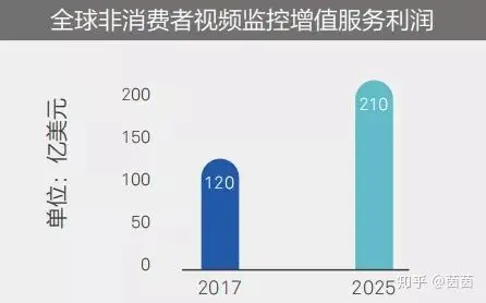 2017年,非消费者视频监控市场的增值服务收入为120亿美元,到2025年预计将增长至210亿美元。