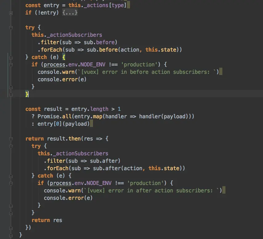//有经验的都应该知道,函数dispatch和commit的this指向在严格模式下指向undefined。