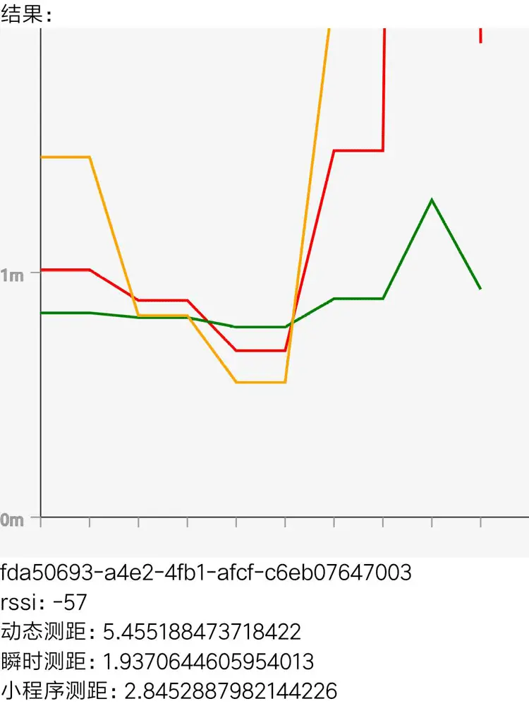 从上图可见,rssi值相对稳定,说明硬件没有太大问题。红线和黄线的波动都很大,说明准确度不咋地。二者的波动趋势几乎一致,所以有理由怀疑微信小程序内部也是用的这个测距公式。从结果来看,这个公式的准确度比较差,可能是因为没有精校的原因。