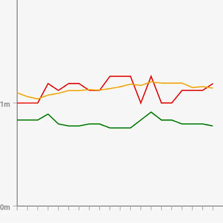 图中黄线还是波动的那么疯狂,但红线却异常稳定,而且呈现出跟绿线一致的波动幅度,说明测距精度靠谱。这个公式只有一个参数,生产环境中的调校相对简单,这里我们选择公式二作为测距公式。