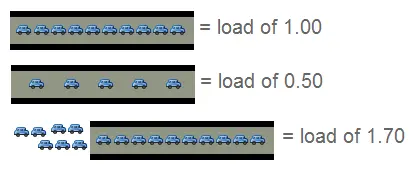 单核,类似单车道车道,数字小于1.0,说明正常,大于1.0则出现拥挤现象,多核心CPU类推,如下图