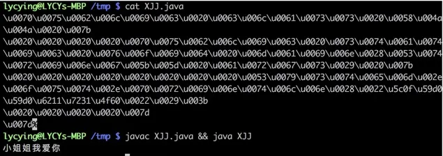 非常负责任的告诉你,是的!不信请看下图。纯纯正正的java代码,class为XJJ的java源码,执行后打印小姐姐我爱你。