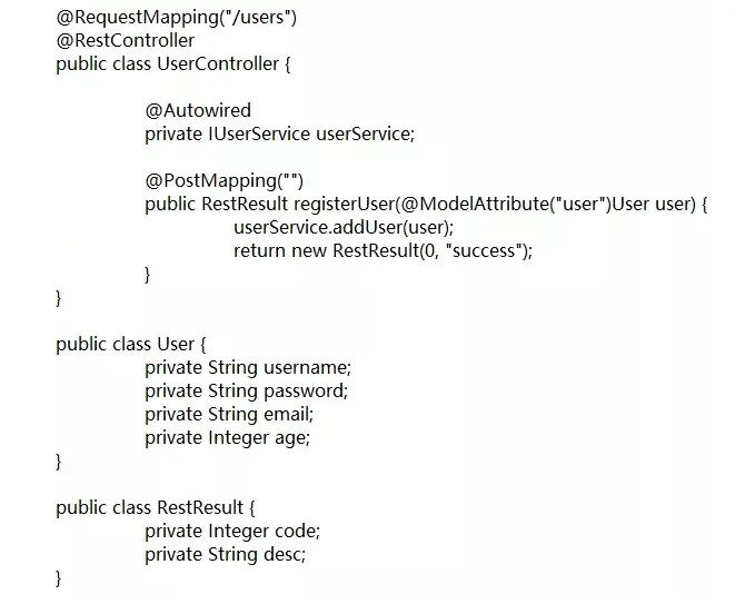 此时,request仿佛明白了,刚才那个家伙根据我的“单子”,使用电脑搜索,为我开了个“方子”。说UserController这个小伙子的registerUser方法“可以治我的病”,其中User是方法入参。