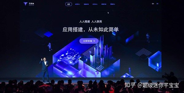 (图:阿里云智能产品管理部总经理马劲在2019阿里云峰会·北京现场进行宜搭应用搭建演示。 )