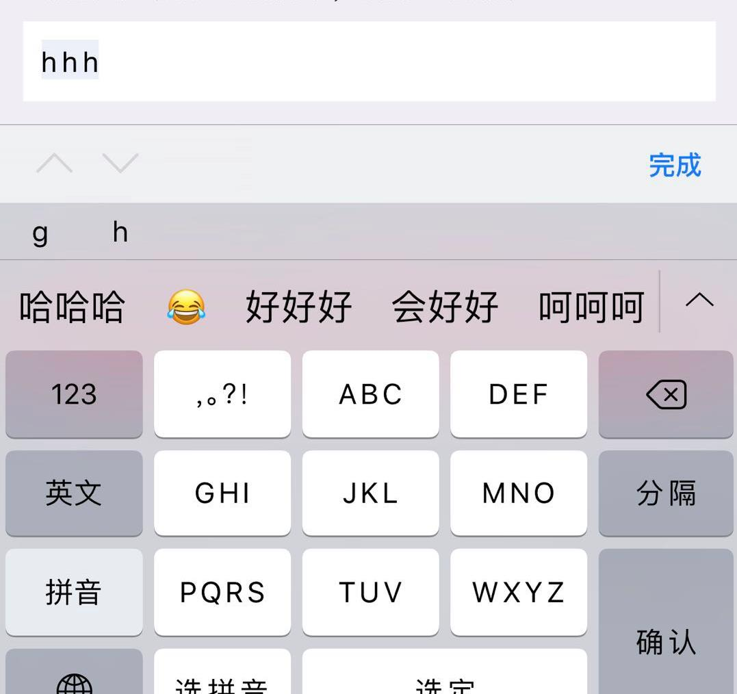 1. 用ios自带的原生键盘 2. 在输入时选择9宫格的键盘输入 3. 连续的点击按键