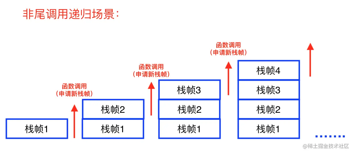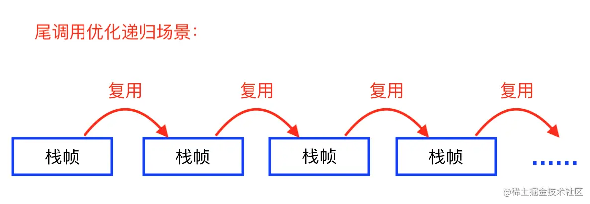 PS:不过还有一种特殊的情况:叫做尾调用优化(其本质是复用栈帧,即函数调用时,不再申请新栈帧,而是复用旧的栈帧。),在下文