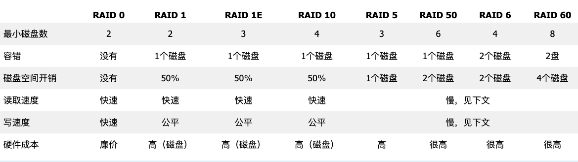 各磁盘级别区别大致如下: