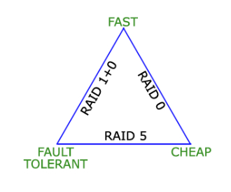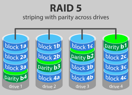 - 读取数据事务非常快,而写入数据事务稍慢(由于必须计算奇偶校验)。