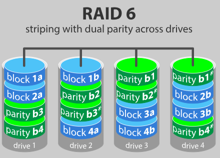 - 如果两个驱动器发生故障,您仍然可以访问所有数据,即使在更换故障驱动器时也是如此。因此RAID 6比RAID 5更安全。