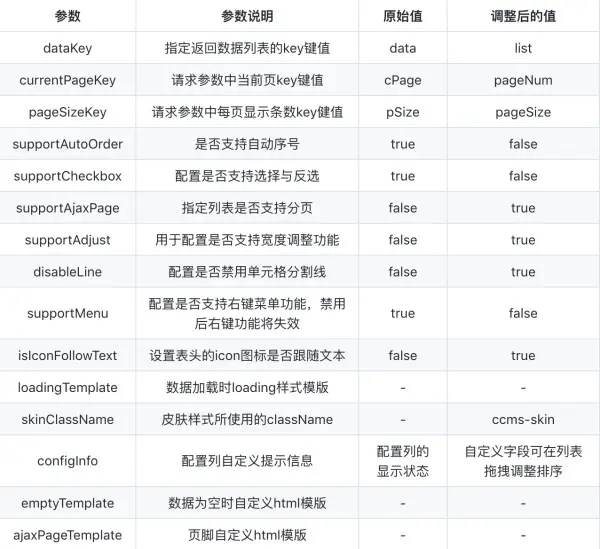 - 用户偏好记忆: 记住用户行为,含用户调整的列宽、列顺序、列可视状态及每页显示条数