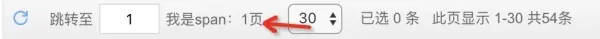 同totals-number-info一样,current-page-info也作为元素的属性值,可以放在模版中任何你想使用的地方,多数情况下,我们将其设置在一个input输入框上,因为用这种方式,我们可以通过输入想跳转的页码回车之后进行跳转到指定页。如: