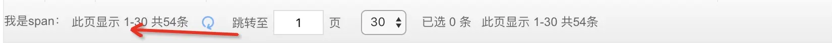 根据属性值totals-number-info展示数据总条数,比如想在其他地方显示数据总条数,那么可以在该模版的任意位置添加一个元素,然后为其添加属性值totals-number-info,即可显示数据总条数,具体的样式也可以自己进行重新调整。如: