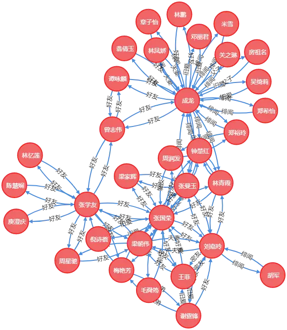 数据到手后,存成 csv,丢到 neo4j 里,就能查询出“张国荣”的关系。