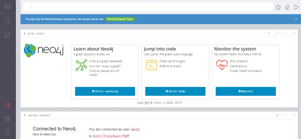 neo4j,按照提醒修改密码后,便完成了准备工作。