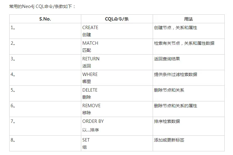 接着便可以用 Cypher 查询语言(CQL,像Oracle数据库具有查询语言SQL,Neo4j具有CQL作为查询语言)创建节点和关系。可阅读w3cschool的教程 快速入门:Neo4j - CQL简介
