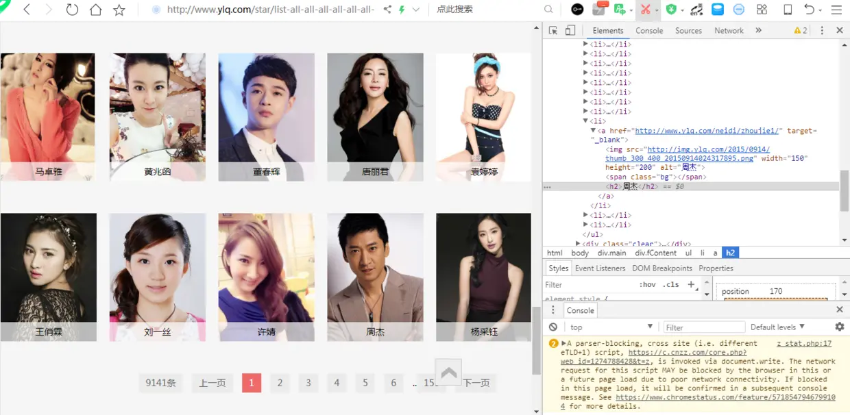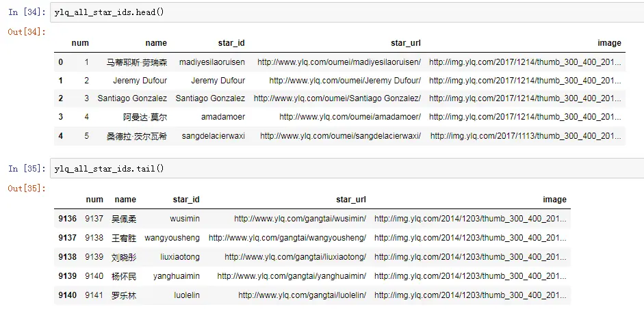 爬虫部分不进行过多讲解,一直翻页直到获取全部9141条明星姓名及个人主页链接即可。完整代码见于:DesertsX/gulius-projects