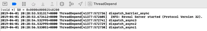 2.说明dispatch_barrier_async的顺序执行还是依赖queue的类型,必需要queue的类型为dispatch_queue_create创建的,而且attr参数值必需是DISPATCH_QUEUE_CONCURRENT类型,前面两个非dispatch_barrier_async的类型的执行是依赖其本身的执行时间的,如果attr如果是DISPATCH_QUEUE_SERIAL时,那就完全是符合Serial queue的FIFO特征了。