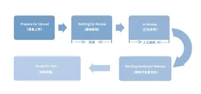 其中 Waiting For Review(等待审核)和In Review(审核)这两个阶段是不受开发者控制的,也就是说,这两个阶段由审核人员操控。