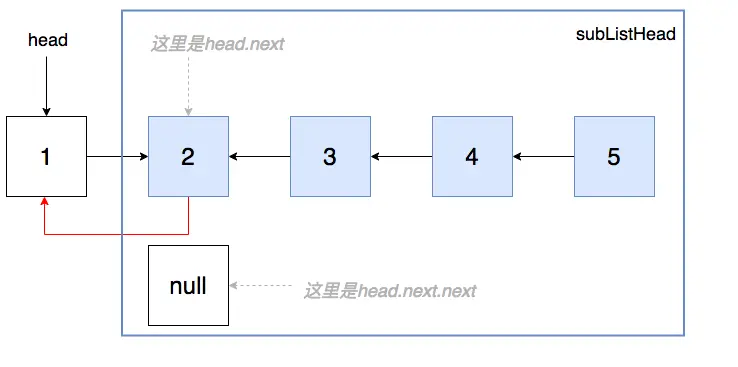 ListNode subListHead = reverseList(head.next);