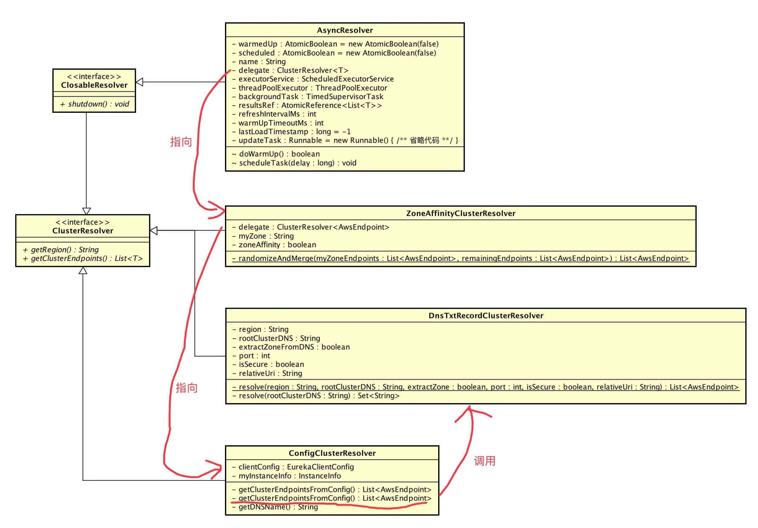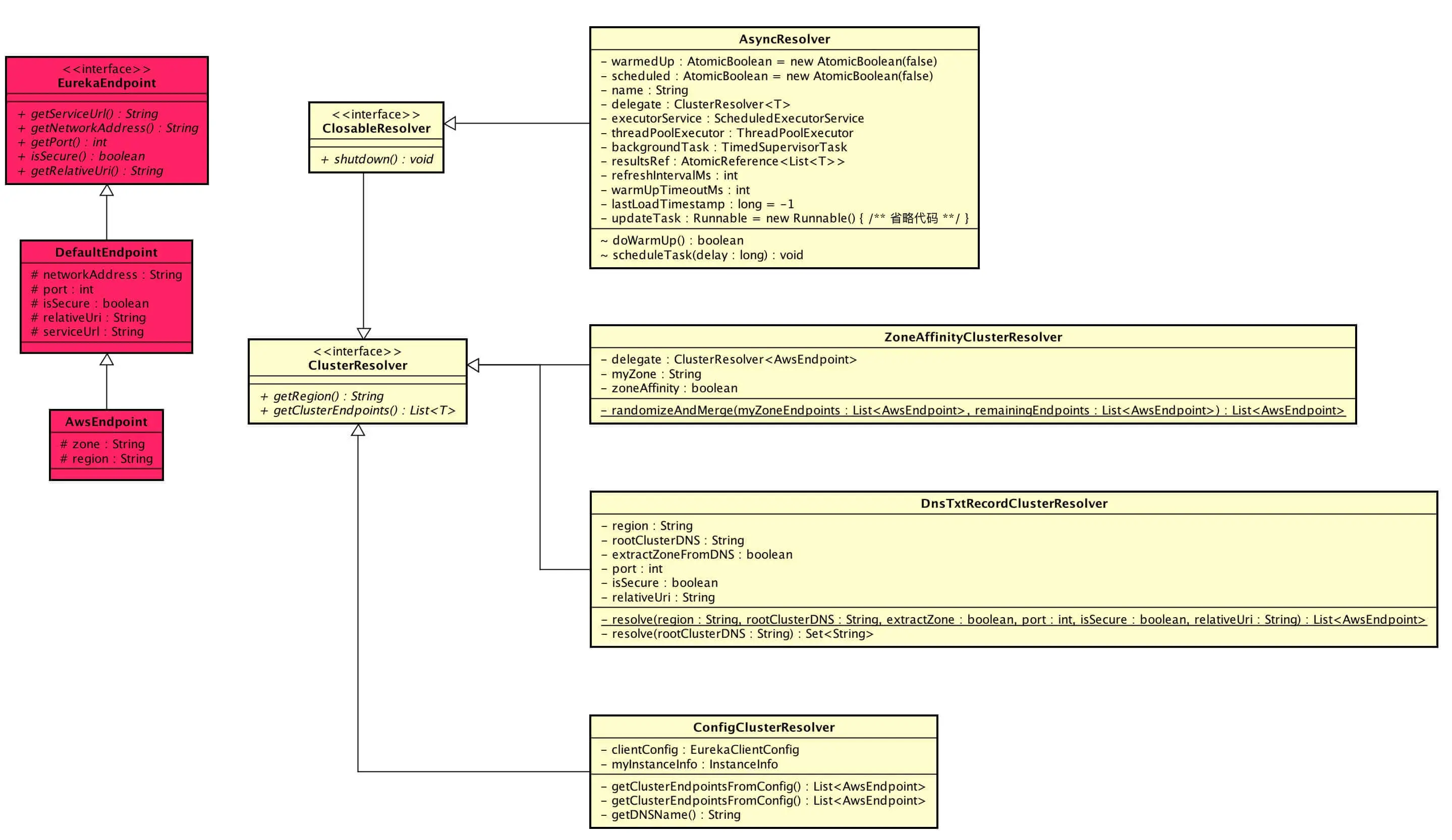 本文涉及类在 com.netflix.discovery.shared.resolver 包下,涉及到主体类的类图如下( 打开大图 ):