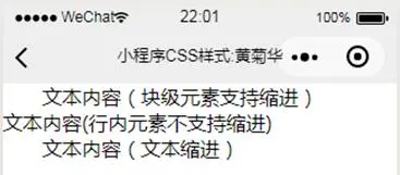 class='cls2'>文本内容(行内元素不支持缩进)</text>