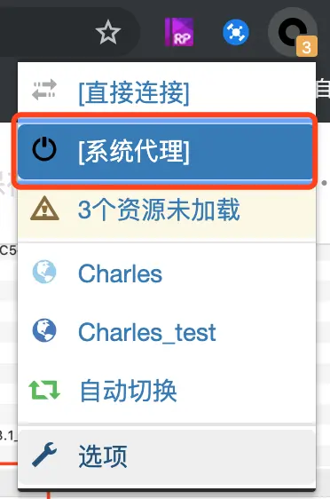 - 切换这个代理模式开始抓包(在不抓包的情况下使用:系统代理/直接连接 或者关闭插件)