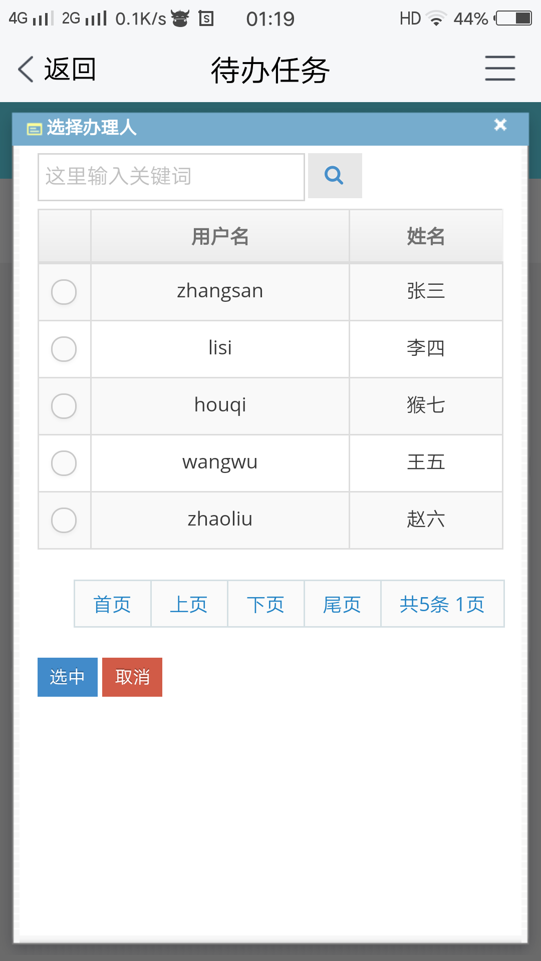 5.待办任务 :查看本人个人任务以及本角色下的任务、办理、驳回、作废、指派一下代理人