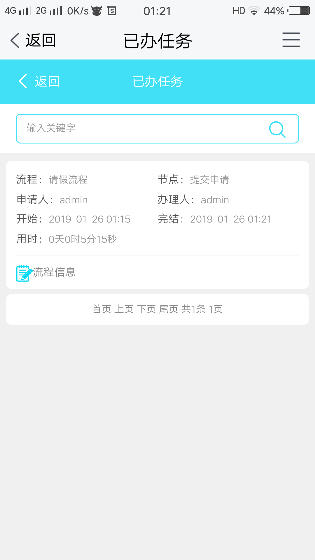 6.已办任务 :查看自己办理过的任务以及流程信息、流程图、流程状态(作废 驳回 正常完成)