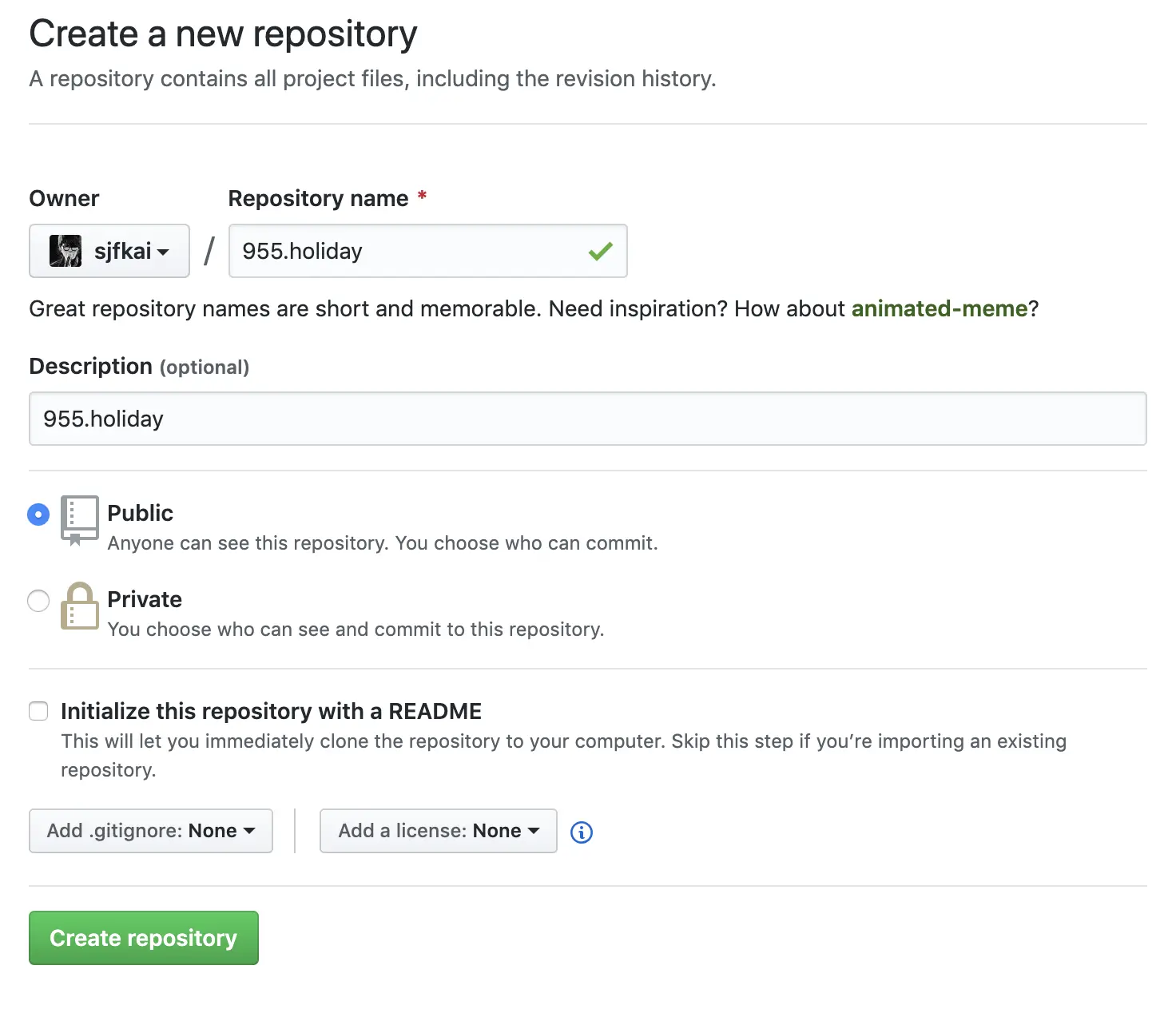 首先需要为我们的网站新建一个仓库(New repository),比如: hello-pages
