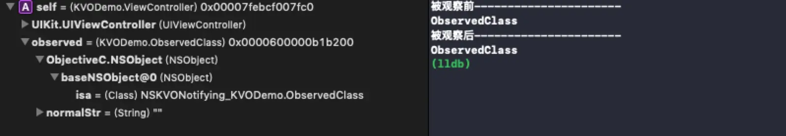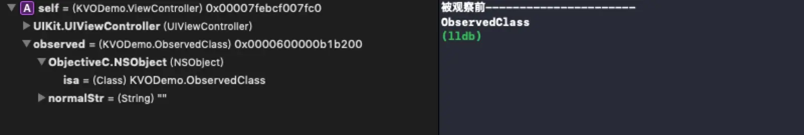 // isa Class KVODemo.ObservedClass 0x0000000100e8c990